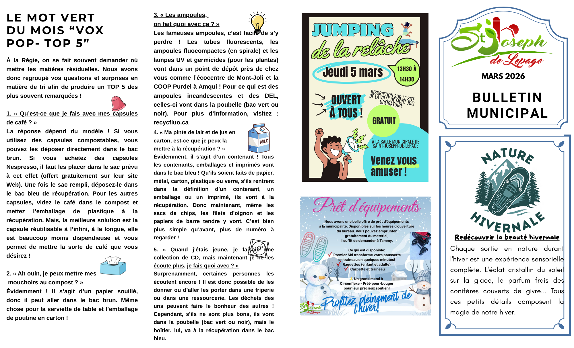 C'EST UN FEUILLET QUE NOUS DISTRIBUONS AUX RÉSIDENTS DE LA MUNICIPALITÉ.